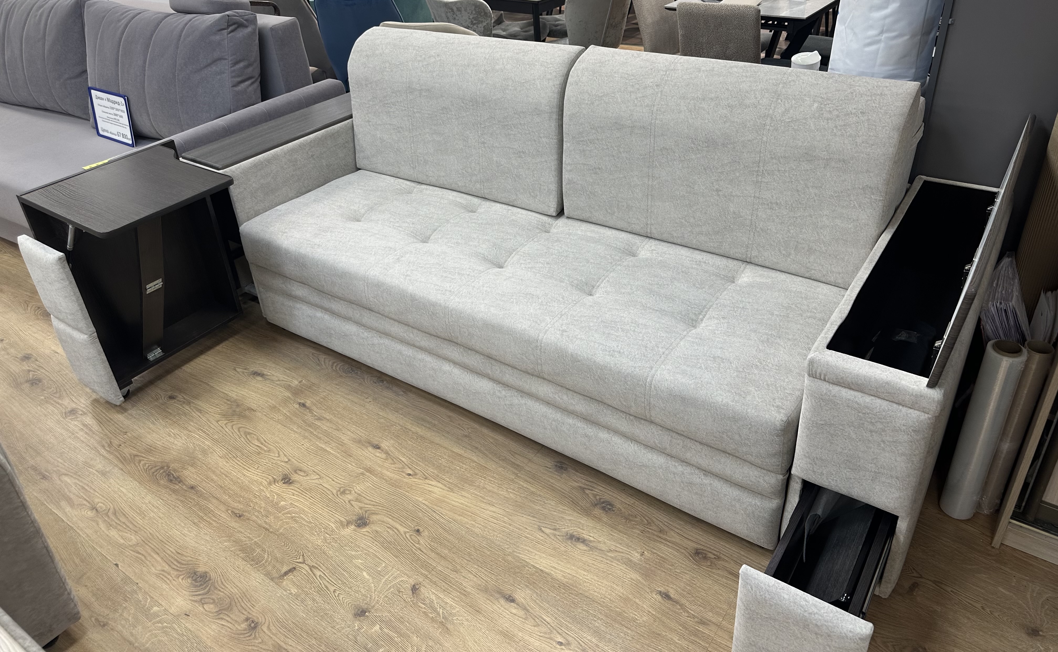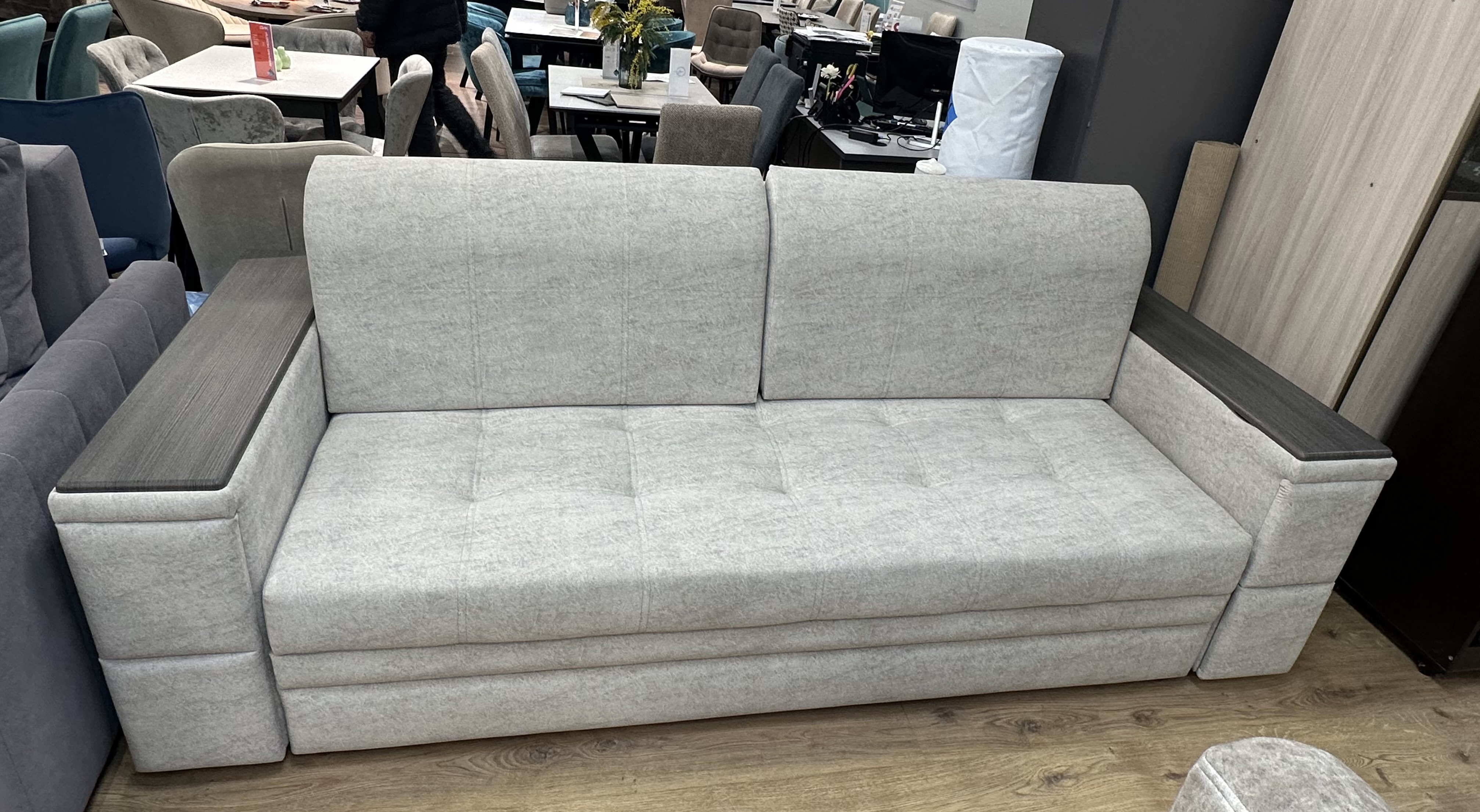 Представляем вашему вниманию диван «Даллас» — гармония комфорта и стиля! С этим диваном ваш дом станет местом истинного уюта и релакса. Использование качественных материалов гарантирует долговечность и сохранение привлекательного внешнего вида долгие годы. Идеальный выбор для тех, кто ценит комфорт и стиль! Диван Даллас имеет металлический каркас, что придает дивану долговечность. Механизм раскладки -выкатной с ящиком. Данная модель многофункциональная. Первое положение спального места на одного человека, когда убираем подушки, ставим их на спинку. Спальное место 800*1900. Но есть хитрость, отодвигаем сидение, снимаем подушки со спинки и кладем их между сидением и спинкой. и спальное место получается 1000*1900. Второе положение стандартная раскладка еврокнижки. выдвигаем сидение, опускаем спинку и получаем двухспальную кровать 1600*1900. Третье положение -это если у вас пришли гости и им не где спать, то нам на выручку приходят ящики. мы их выдвигаем, на них кладем подушки и получается большое спальное место, на котором можно спать перпендикулярно стене, длина становиться шириной 1900, а длина увеличивается до 2200. В этой модели можем предложить кресло со спальном местом. Ширина кресла от 700 до ширины дивана. 700,800,900,1000,1100,1200,1300,1400,1500,1600,1700,1800,1900,2000 К модели предлагаем 8 видов подлокотников и 4 вида подушек. И несколько цветовых решений декора на подлокотниках. Данный диван 2100*1000*Н900 сп.м. 1900*1600(2200) Наполнение ППУ 30/40. Наполнение ортопедическое жесткое, для людей имеющих проблемы со спиной. Виды раскладки представлены с такого же дивана только с другими подлокотниками. Длину дивана можно увеличить до 2000. Для увеличения длины более 2000 предлагаем добавить кресельную часть. Кресельная часть помогает из прямого дивана сделать диван с оттоманкой.