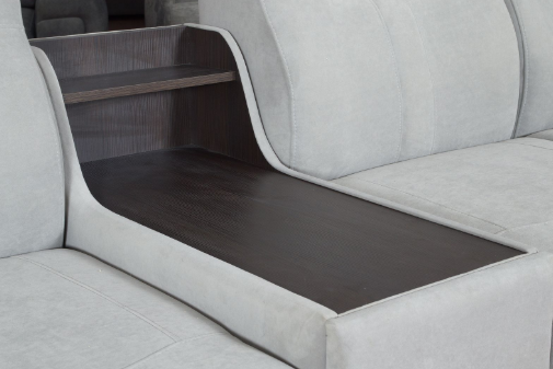 Доступна доп. секция с функциональным баром, оснащенная беспроводным зарядном устройством и подстаканниками.