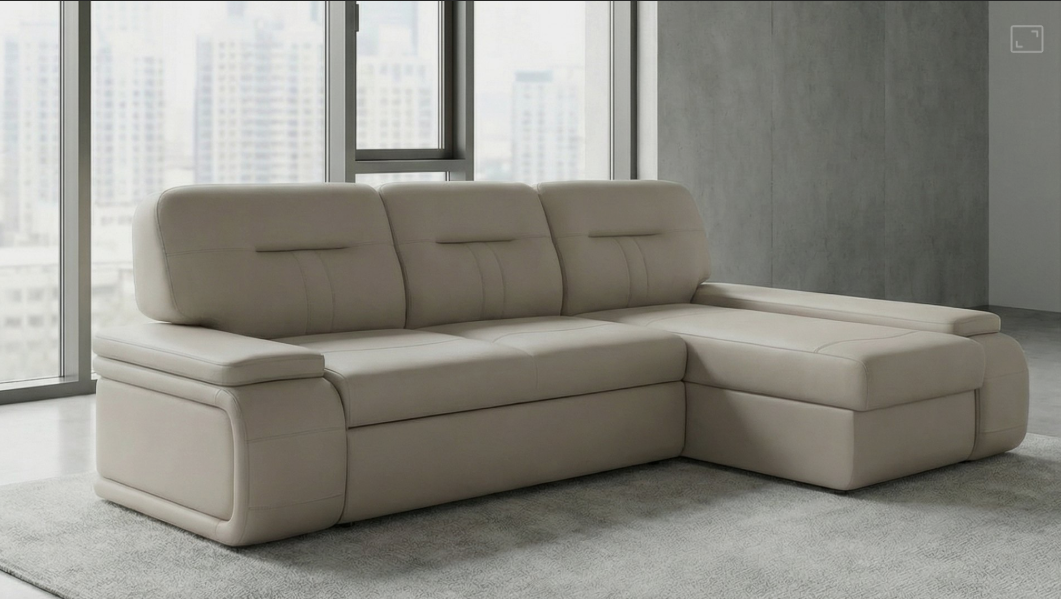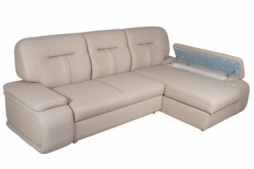 Диван с фактурными подлокотниками. Цельная спинка с несъемными литыми подушками Стильная отстрочка и отделка. Дополнительная секция с функциональным баром, оснащенная беспроводным зарядном устройством и подстаканниками. Функциональный ящик в подлокотнике.