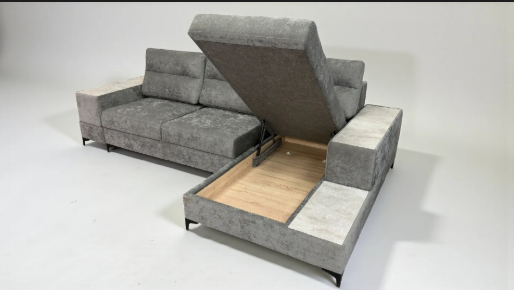 Новинка 2026 года. Диван с оптимальной глубиной посадки. Основная изюминка модели это трансформируемые подлокотники. Верхние части подлокотников мобильные и имеют две функциональные стороны: одну в виде столешницы из ЛДСП, другую — мягкую, которые могут служить как пуфик или столик.