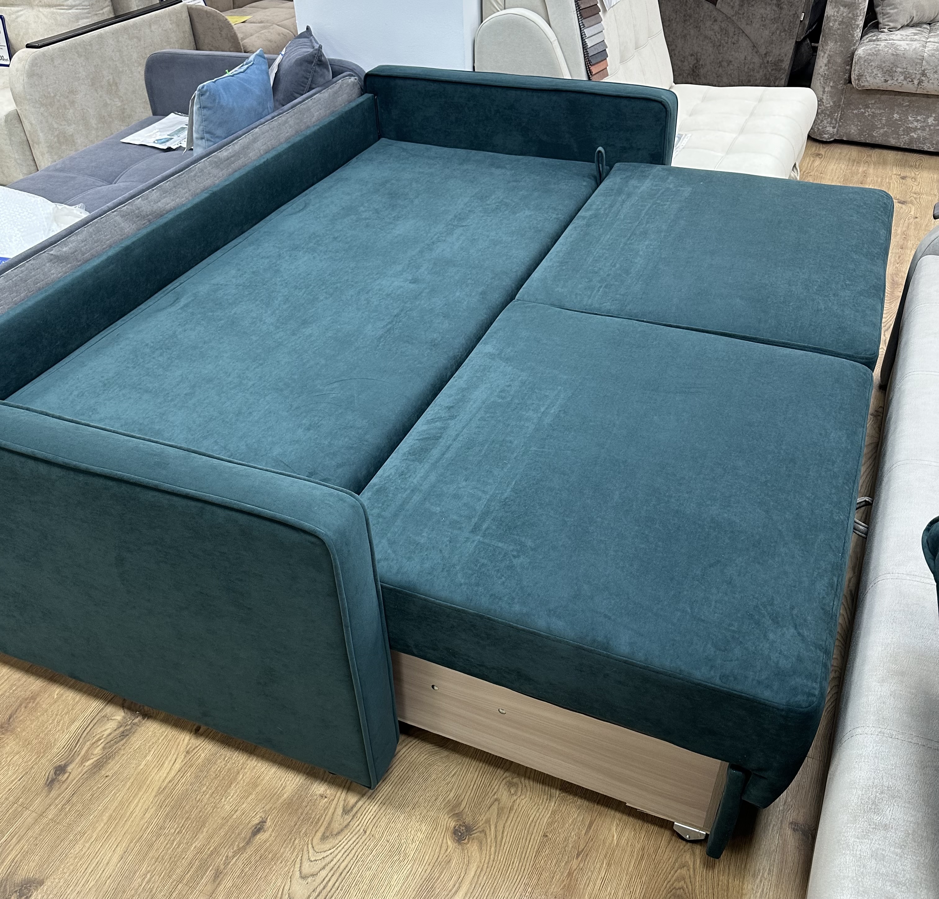 Откройте для себя комфорт нового уровня с диваном «Лолита 5 с разделением»! Идеальный выбор для вашего дома или офиса – удобство трансформации, просторное спальное место и стильный дизайн создадут атмосферу максимального уюта. Разделение на сидении дивана визуально создает видимость как-будто диван состоит из двух частей, но это одна цельная, прочная конструкция. Если вам не нужен такой эффект мы сделаем сидушку цельной. Прочный металлокаркас и качественные материалы обеспечивают долговечность изделия. Вдохните жизнь в ваше пространство вместе с «Лолитой». Доступный ящик с механизмом раскладки сундук позволит не раздвигая диван пользоваться ящиком. Наполнение НПБ позволит комфортно сидеть и спать на диване. Общие габариты 2100*1050*Н900 спальное место 1900*1650. Общие габариты зависят от длины спального места и размеры подлокотников. Вашему вниманию можем предложить 8 видов подлокотников и несколько цветовых решений декоров. В диване есть обязательно задняя планка, которая не дает возможности соприкасаться со стеной. У людей которых есть аллергия на пыль, этот диван находка. Потому что можно при раскладке дивана сделать влажную уборку.Твк как есть свободный доступ к полу. Мы создаем диваны по вашему желанию. Нужно только знать размер куда вы хотите поставить диван. Ждем вас на нашем подиуме в МЦ Москва. Готовы помочь подобрать то,что вам нужно.