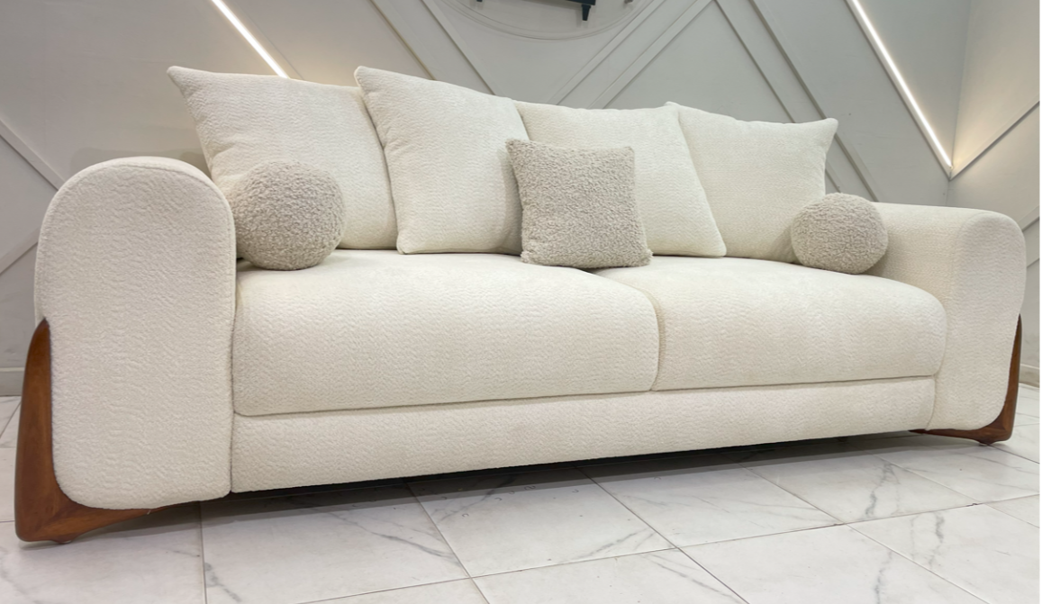 Главное отличие от других диванов, это красивые эксклюзивные деревянные ножки ручной работы интересной формы выполнены из американского ореха. Могут быть в трех цветах.