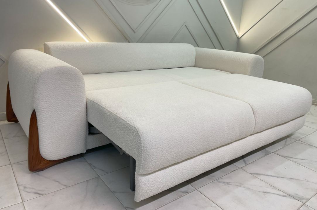 Раскладка механизмом пума дает возможность одной рукой превратить диван в спальное место. Комфортная глубокая мягкая посадка, наполнение резинотканевые ремни плюс ППУ HS3030 повышенной эластичности плюс ППУ4 см Memory foam с эффектом памяти+ ППУ elax премиум и холсофт с эффектом восстановления.