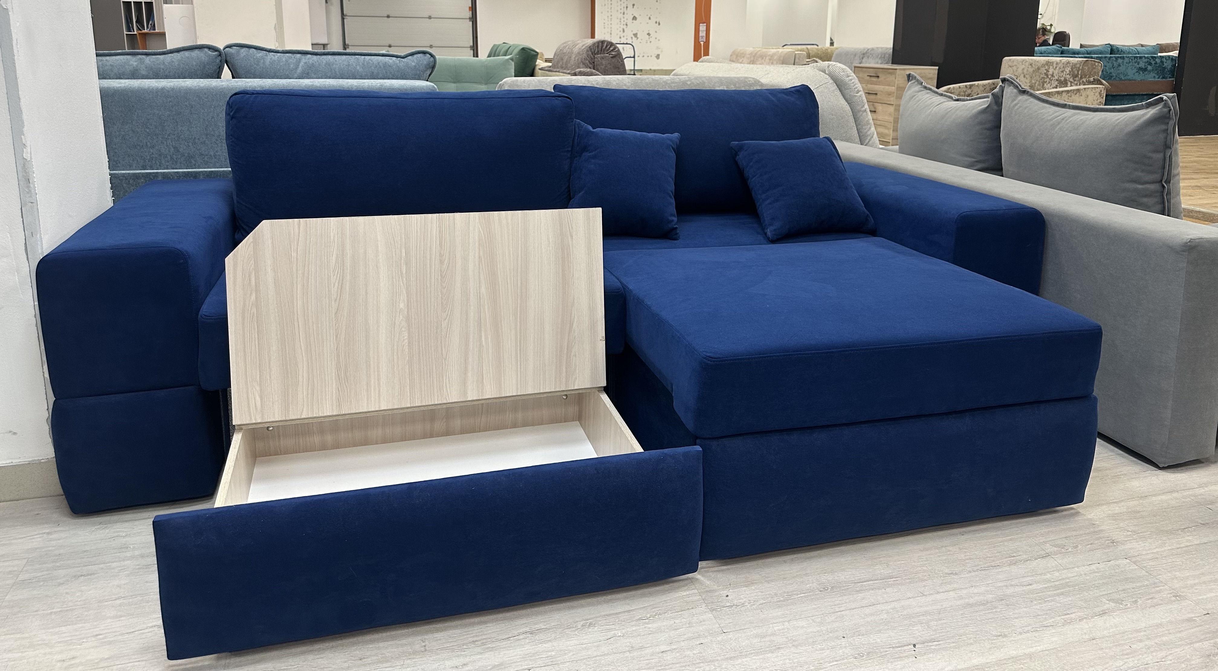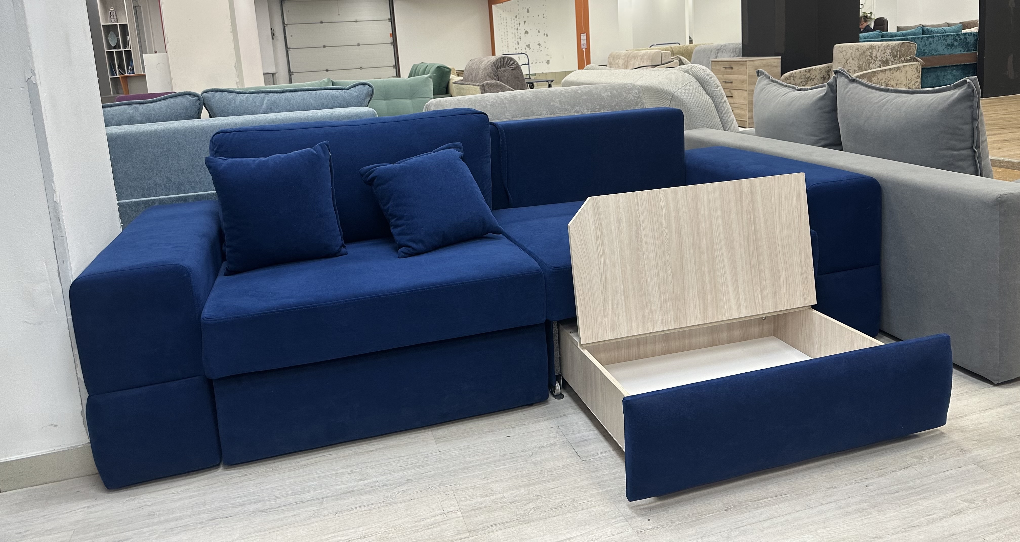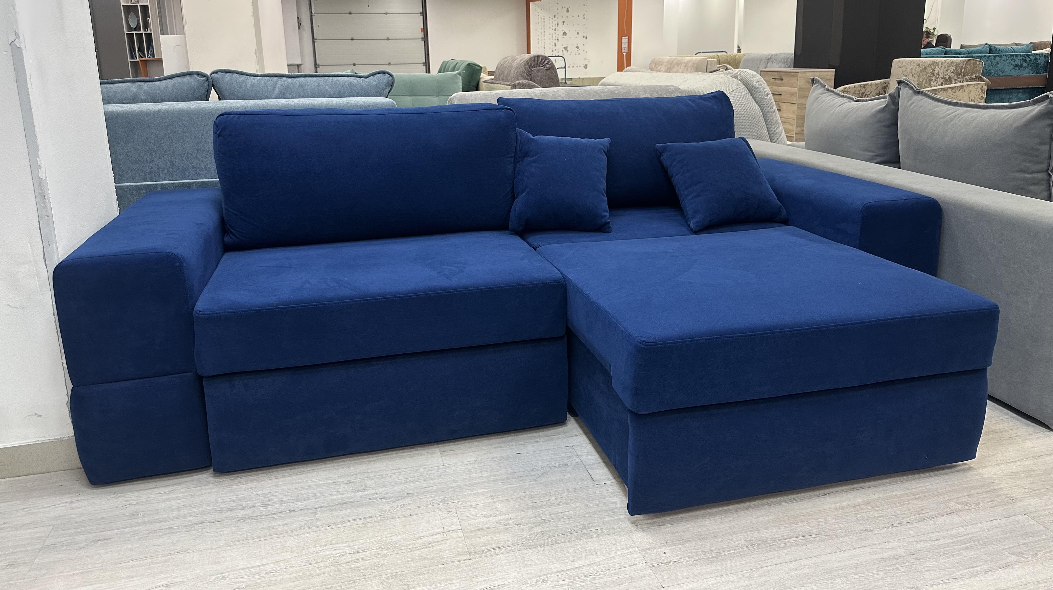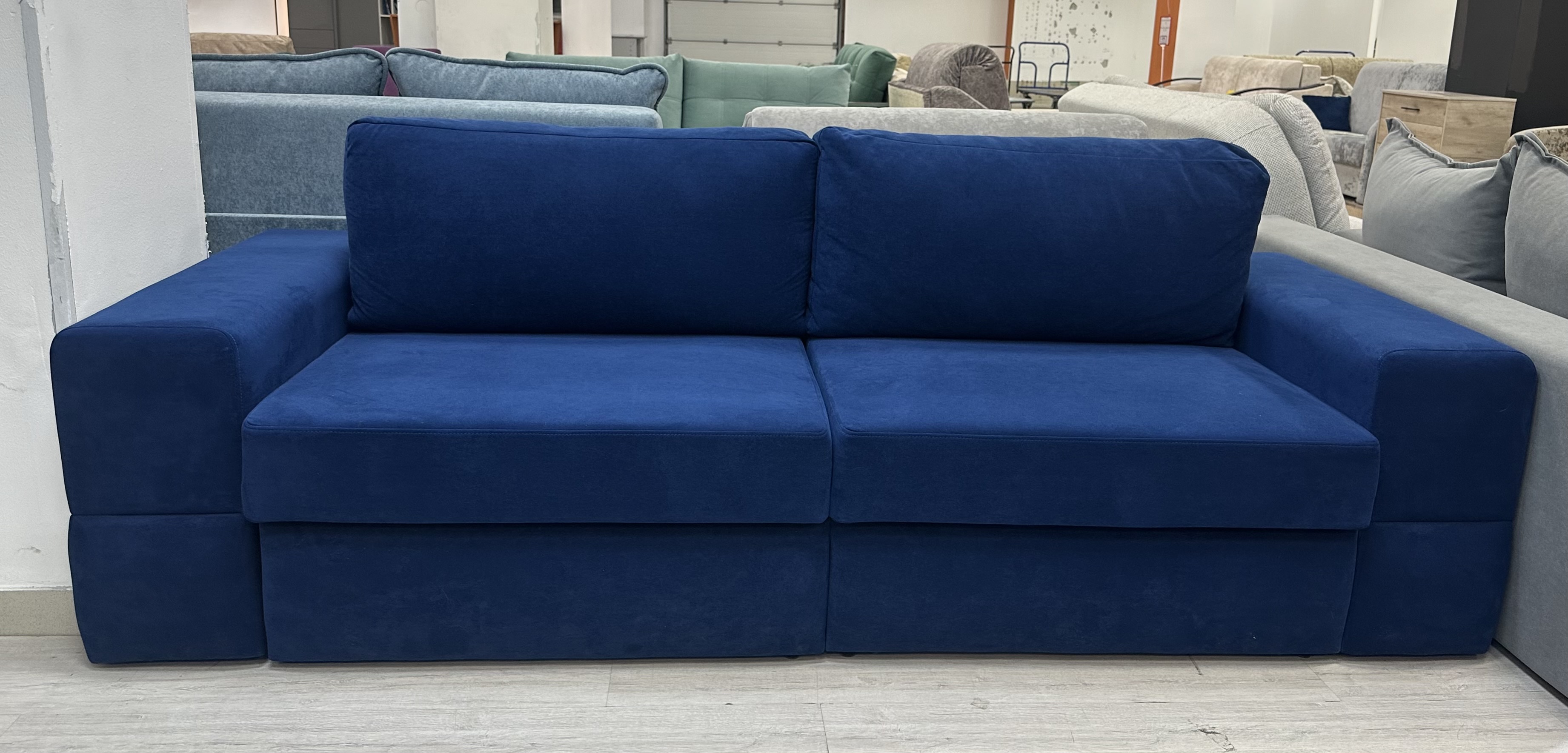 Диван «Нардин 2 синий» — стильное решение для вашего интерьера! Сочетание элегантного дизайна и комфорта позволит вам наслаждаться каждым моментом, проведенным дома. Высококачественные материалы обеспечивают долговечность мебели, а мягкий, глубокий цвет создает атмосферу спокойствия и уюта. Удобная система трансформации превращает диван в полноценное спальное место всего одним движением. Сделайте свой выбор в пользу красоты, удобства и практичности уже сегодня! Диван Нардин, как кубик-рубик. Его можно собрать по вашему желанию. Меняем подлокотники от 5см и каждые 5 см плюсуем к размеру. Диван на металлокаркасе имеет частичное выдвижение. Диван состоит из двух частей, каждая часть выдвигается по отдельности и может стать полноценным спальным местом. Механизм раскладки выкатной с ящиком позволяет спать, как параллельно стене, так и перпендикулярно стене. Первая раскладка - выдвигаем сидение и опускаем спинку получается спальное место 1600*1900. Затем достаем ящики и на них кладем подушки и спальное место становиться 1900*1930. Фабрика позаботилась о красоте и уюте. Ящики с боку обтянуты тканью. И при полном раскладе мы получаем вид кровати. Наполнение НПБ средней жесткости. А главное есть задняя планка, которая разделяем спящего от стены. Можем предложить большой выбор тканей.
