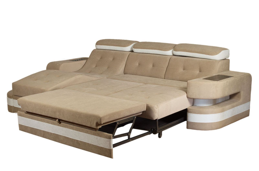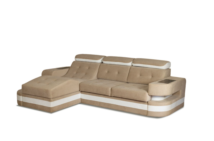 Диван «Аурис» с оттоманкой и встроенной подсветкой – идеальный выбор для вашего дома! Современный дизайн подчеркнет стиль интерьера, а удобная конструкция подарит комфорт даже после долгого дня. Подсветка создает атмосферу уюта и релакса вечером. Удобная оттоманка с изгибом позволяет использовать диван как место отдыха. Оптимальный вариант для тех, кто ценит красоту, функциональность и удобство! Размер 2900*1870*Н920 спальное место 1500*1900. Особенность этого дивана заключается в удивительном механизме раскладки- трех выкатной, который позволяет легко превратить диван в большую, удобную кровать. Благодаря этому вы сможете не только отдохнуть на диване, но и комфортно провести ночь на нем. А подсветка создаст романтическое настроение. Если к дивану заказать Бар, то это будет самое любимое место в доме. Наполнение дивана усилит все его плюсы. Высокоэластичный ППУ с подложкой из периотека, обеспечит не только комфорт, но и долговечность. Если диван не проходит у вас по размеру, мы сможем заменить шикарные подлокотники на более узкие, но диван от этого не потеряет своего лоска. На подиуме в МЦ Москва иы вам предложим большой выбор отличных, изысканных тканей.