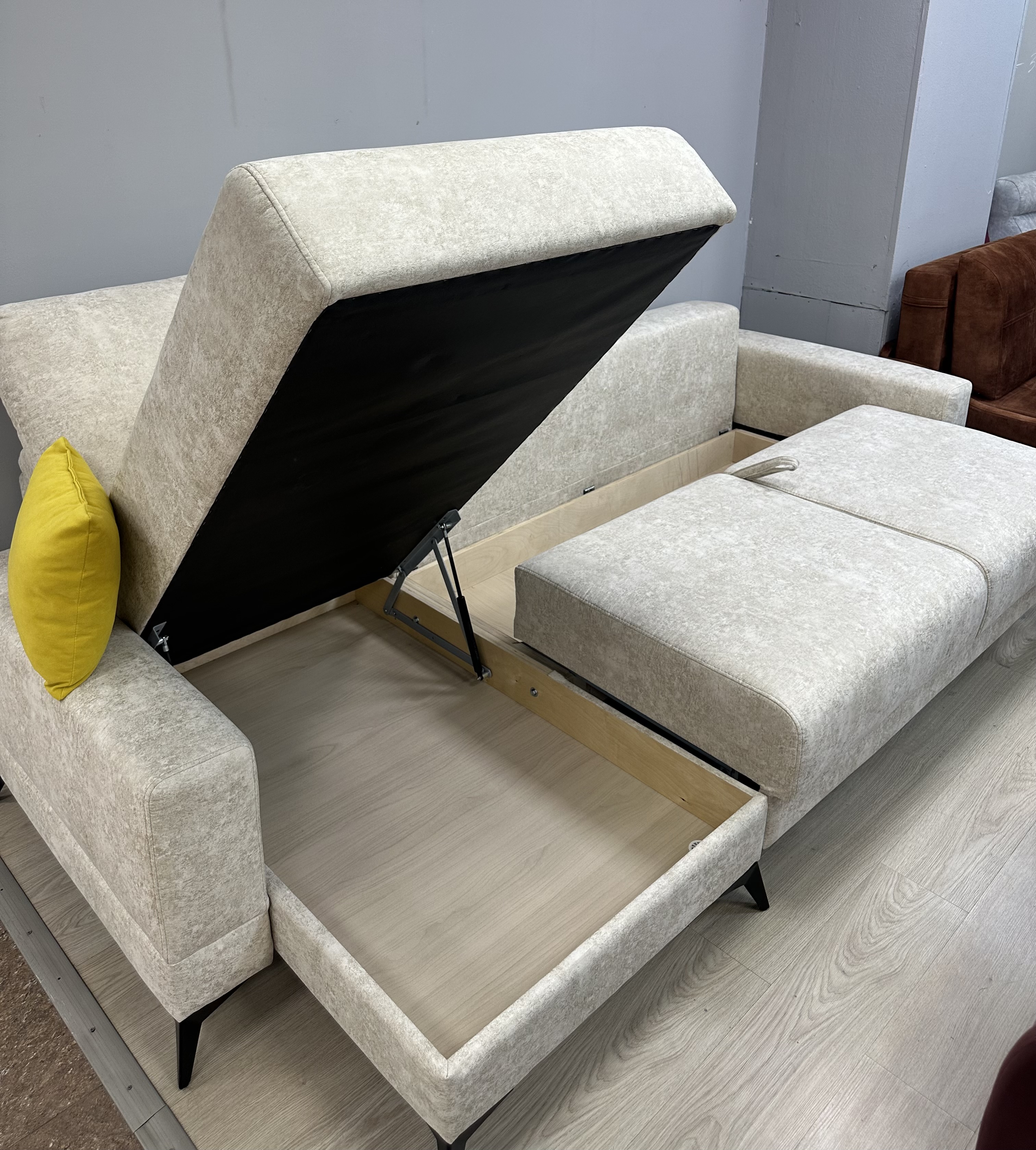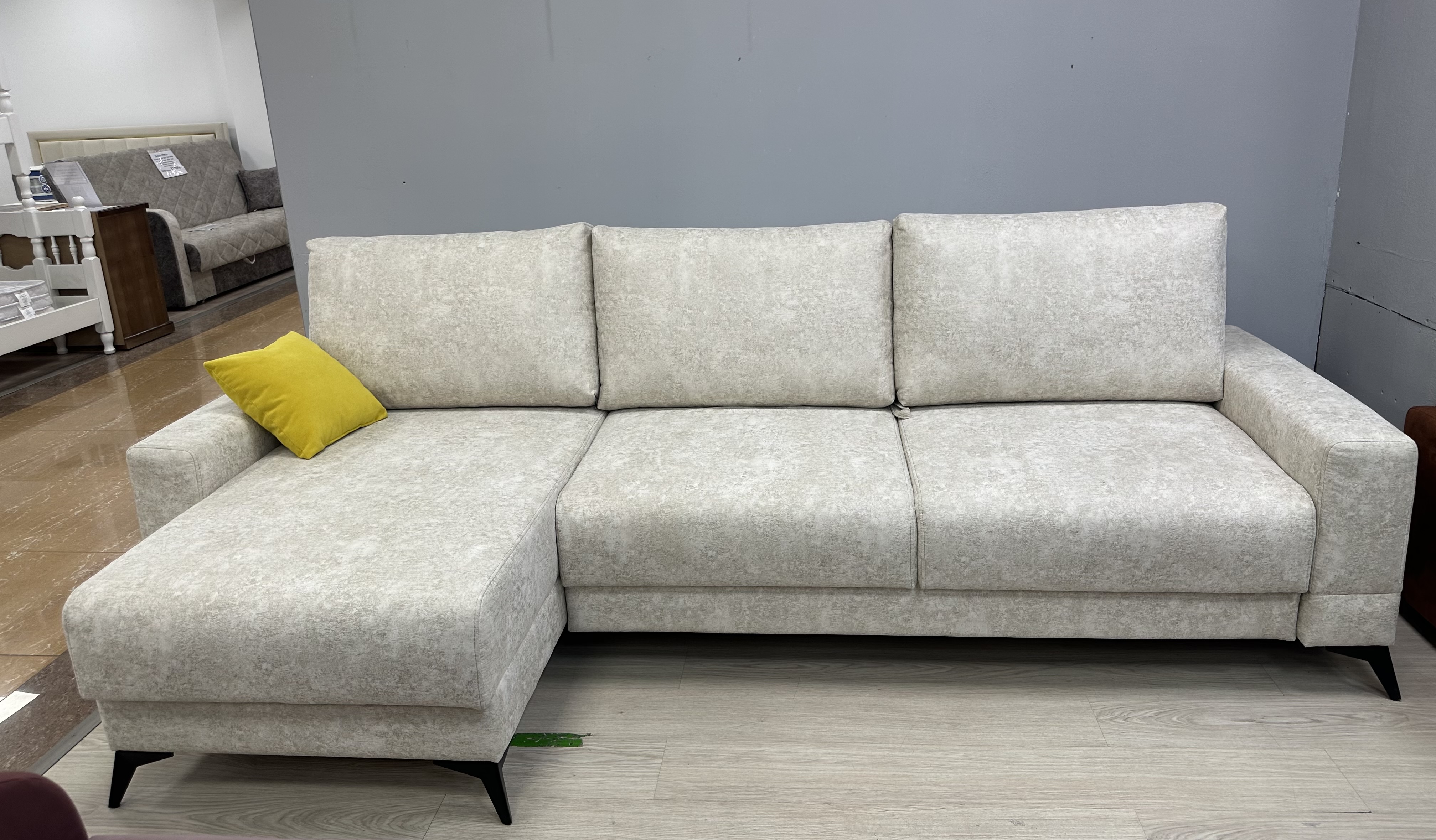Диван с оттоманкой «Бруклин» – идеальное сочетание комфорта и стиля! Светлое исполнение гармонично впишется в любой интерьер, визуально расширяя пространство. Удобная оттоманка добавляет дополнительное место для сидения и хранения, превращая ваш дом в оазис уюта и практичности. Идеальный выбор для тех, кто ценит комфорт и современный дизайн в каждой детали своего дома! Высокие металлические ножки высотой 13 см позволяют без препятственно пройти роботу-пылесосу и произвести уборку. В домашних условиях можно переставить оттоманку слева направо. Механизм раскладки Тик-Так позволяет одной рукой раскрыть диван, превратив его в большое спальное место. Наполнение НПБ средней жесткости. Диван можно сделать прямым. Ширина подлокотников меняется. Может предложить большой выбор ткани.