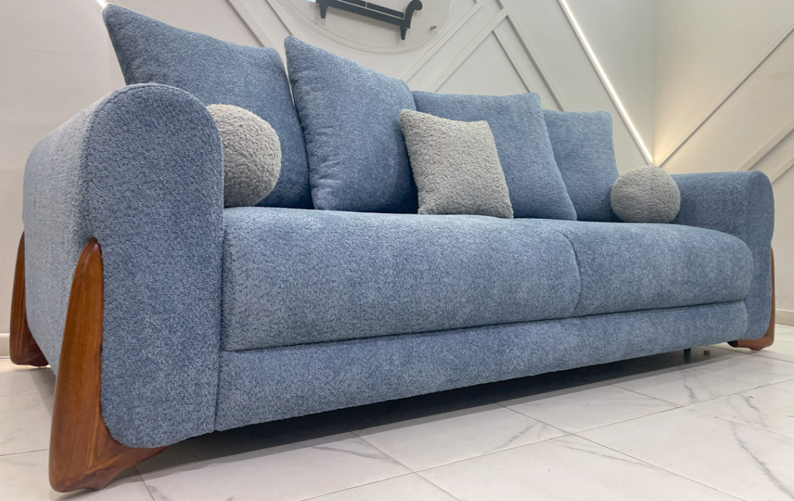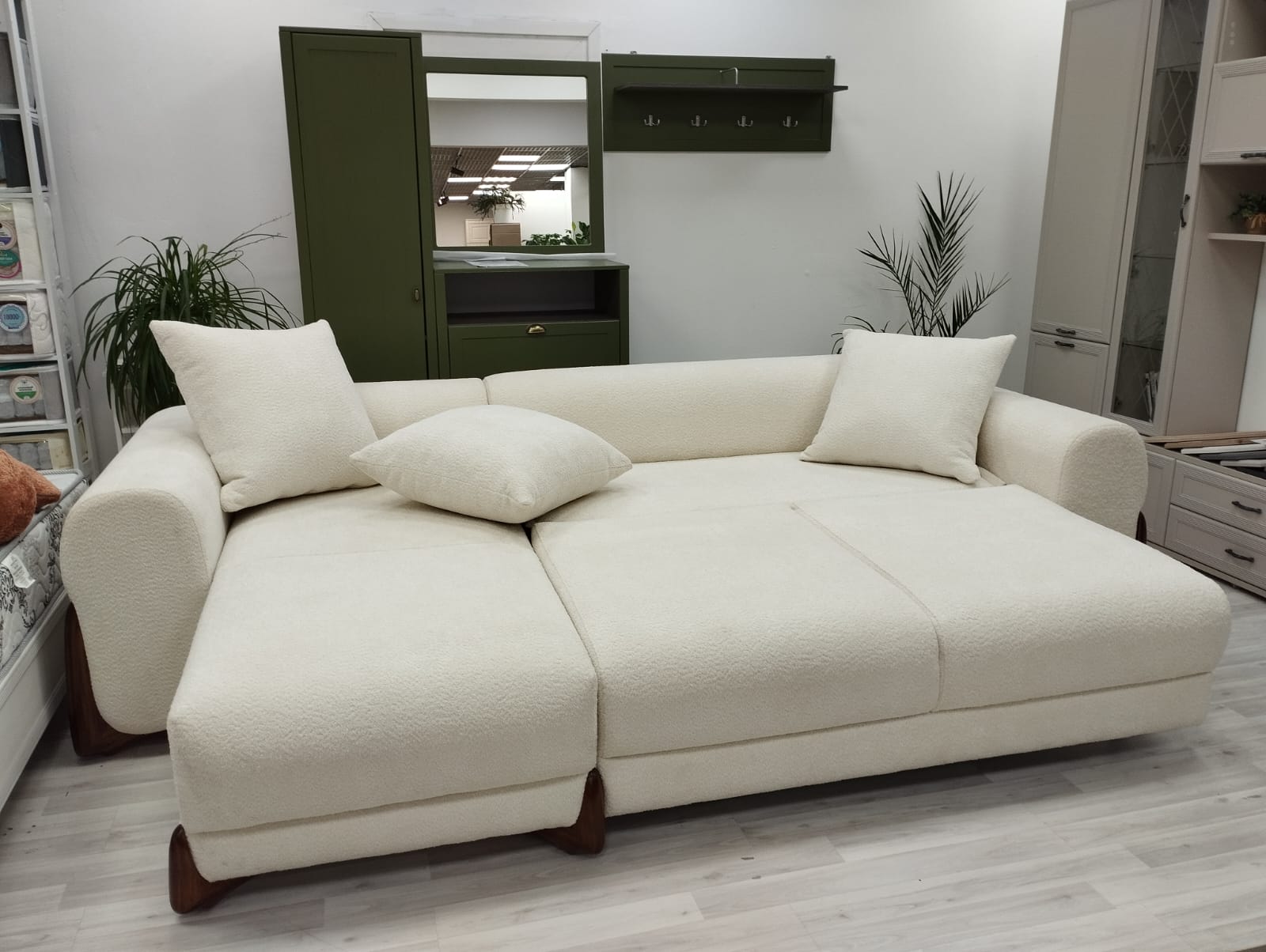 Главное отличие от других диванов, это красивые деревянные ножки интересной формы. Раскладка механизмом пума дает возможность одной рукой превратить диван в спальное место. Комфортная глубокая мягкая посадка, наполнение резинотканевые ремни плюс ППУ HS3030 повышенной эластичности плюс ППУ4 см Memory foam с эффектом памяти+ ППУ elax премиум и холсофт с эффектом восстановления.