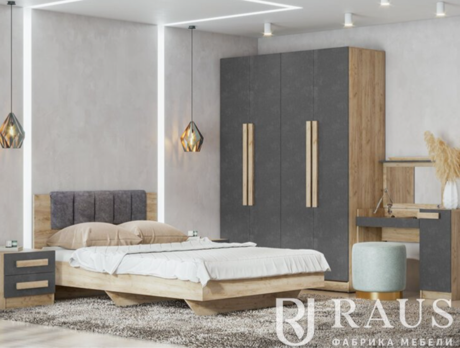 Модульная программа «Тесс» – ультра модная коллекция мебели для гостиной и спальной комнаты. Настоящее произведение мебельного искусства с фантастически приятным сочетанием цветовых оттенков: Дуб Крафт Золотой, и Пепельный в двух вариантах – светлый и темный. В программе представлены напольные и настенные элементы. Коллекцию отличает оригинальный дизайн и принципиально новая конструкция отдельных модулей. Настоящая находка – ручки и кроватные ножки оригинальной формы, необычное оформление изголовья кровати (мягкие вставки), косметический столик с откидывающейся крышкой. При изготовлении использованы направляющие полного выдвижения, мебельные газлифты, что весьма улучшает удобство эксплуатации. Унифицированные размеры отдельных модулей позволят вам выбрать нужные и создать гармоничный мебельный ансамбл